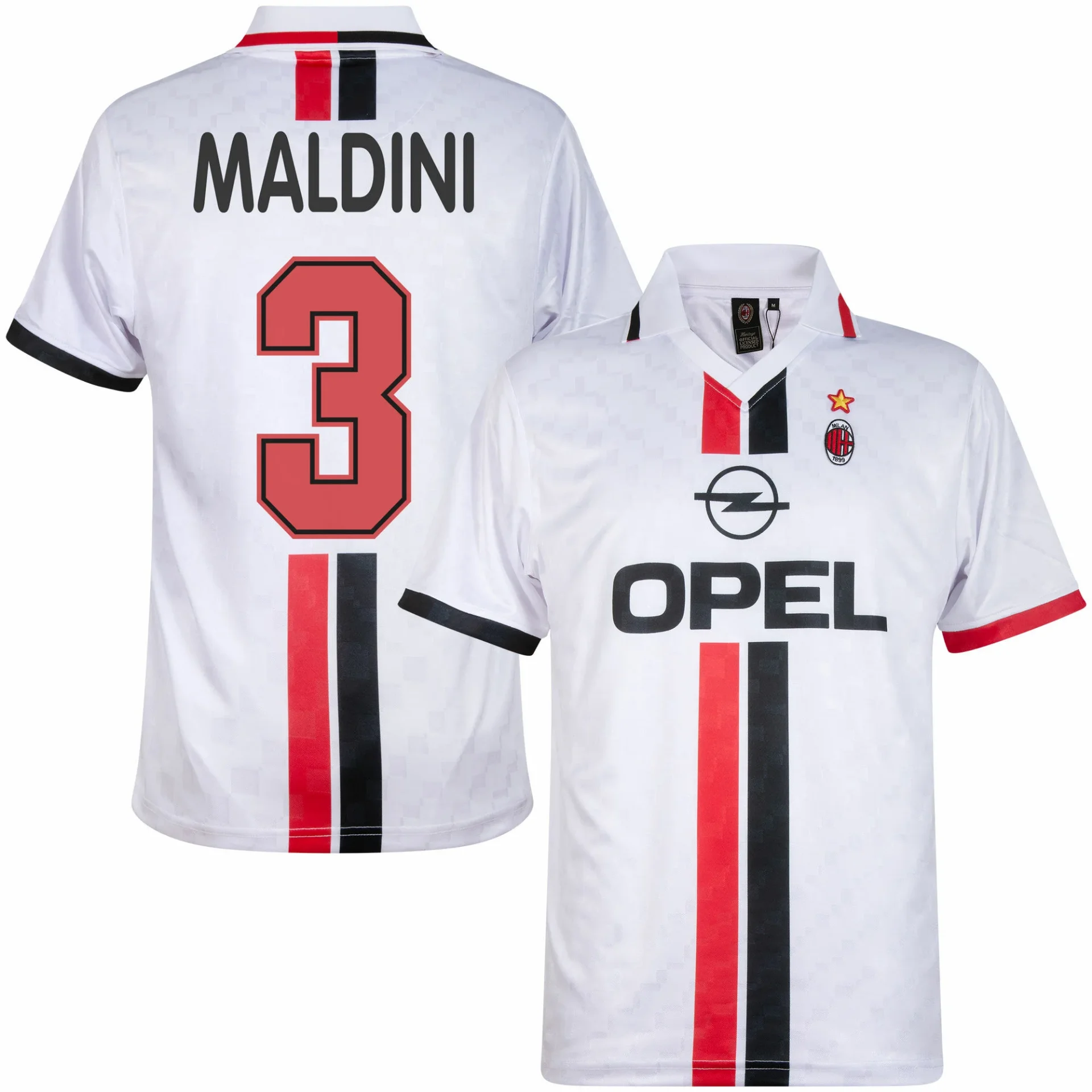 Voici le maillot rétro officiel de l'AC Milan pour la saison 1995-1996, proposé par COPA Football. Le dos arbore le portrait du joueur vedette Maldini (n° 3). Ce maillot rétro est inspiré du maillot extérieur de Milan de la saison 1995-1996. Majoritairement blanc, il se caractérise par des rayures rouges et noires au centre. Le nom du sponsor de l'époque, OPEL, est imprimé au centre de la poitrine. Le logo de l'AC Milan, surmonté d'une étoile dorée, est apposé sur la poitrine gauche. Ce maillot rétro de l'AC Milan possède également un col polo blanc en V. Un maillot incontournable pour tout supporter milanais ! Ce maillot rétro de l'AC Milan, proposé par COPA Football, offre une coupe classique. Composition : 100 % polyester recyclé.